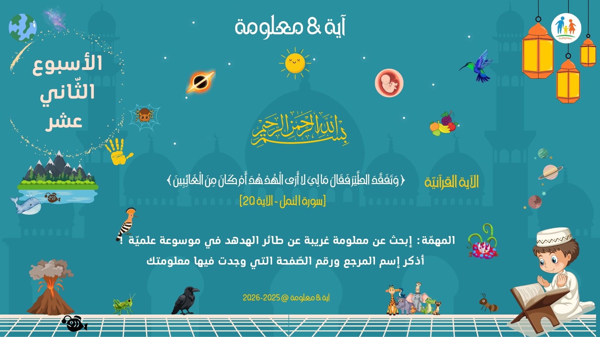 "الهدهد طائر صغير، لكن الله أعطاه أشياء مميّزة، واختاره ليحمل رسالة مهمّة. وأنت أيضًا… الله خلقك بشيء مميّز."