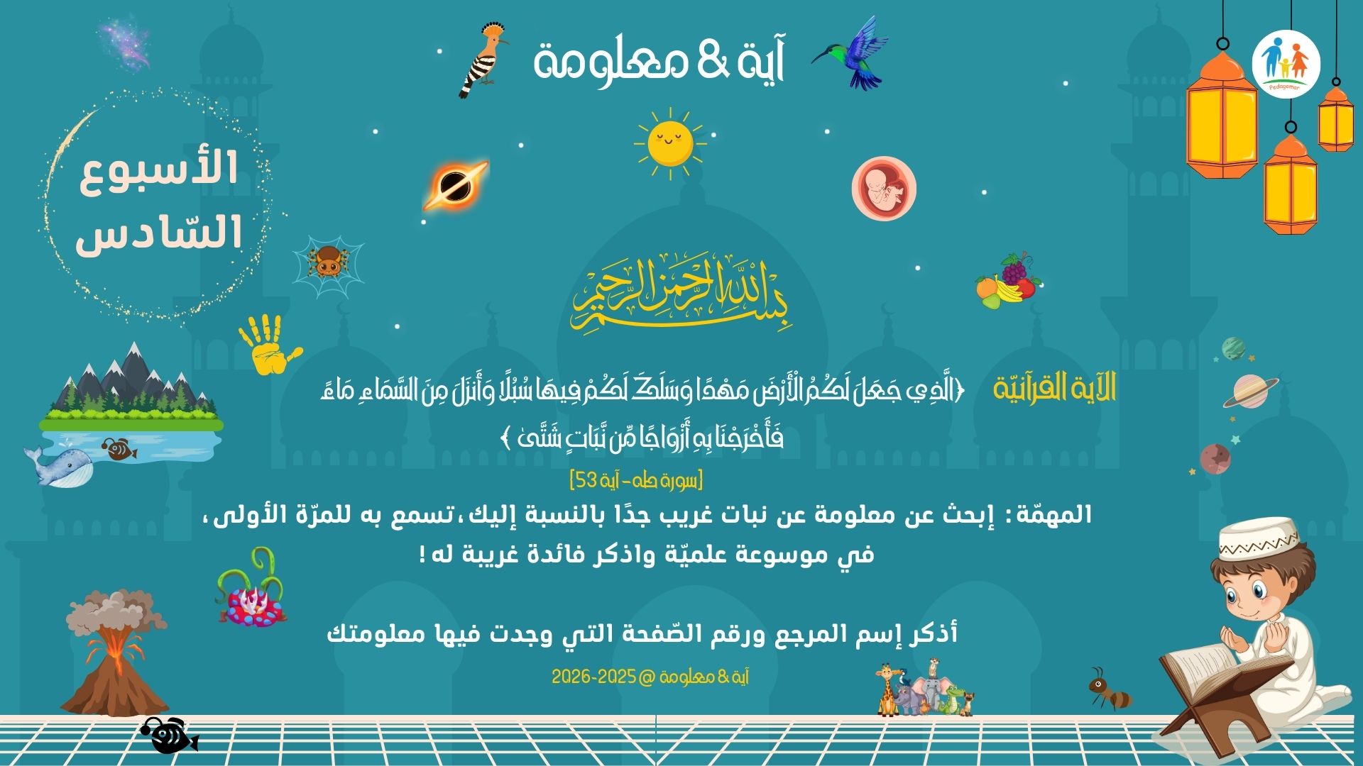 الأهداف التربوية الأسبوعية — آية ومعلومة