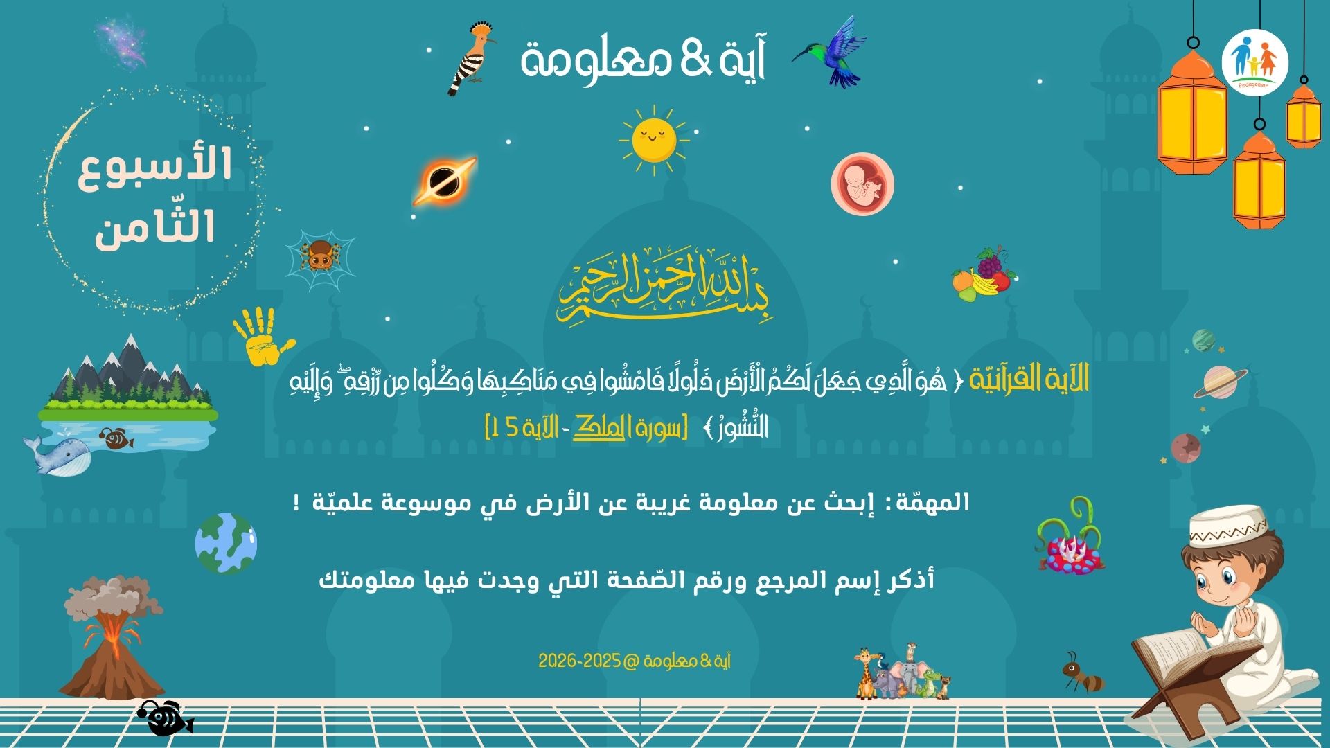 - يتعلّم الطفل أن جعل الأرض “ذلولًا” هو رحمة عظيمة من الله بالإنسان: