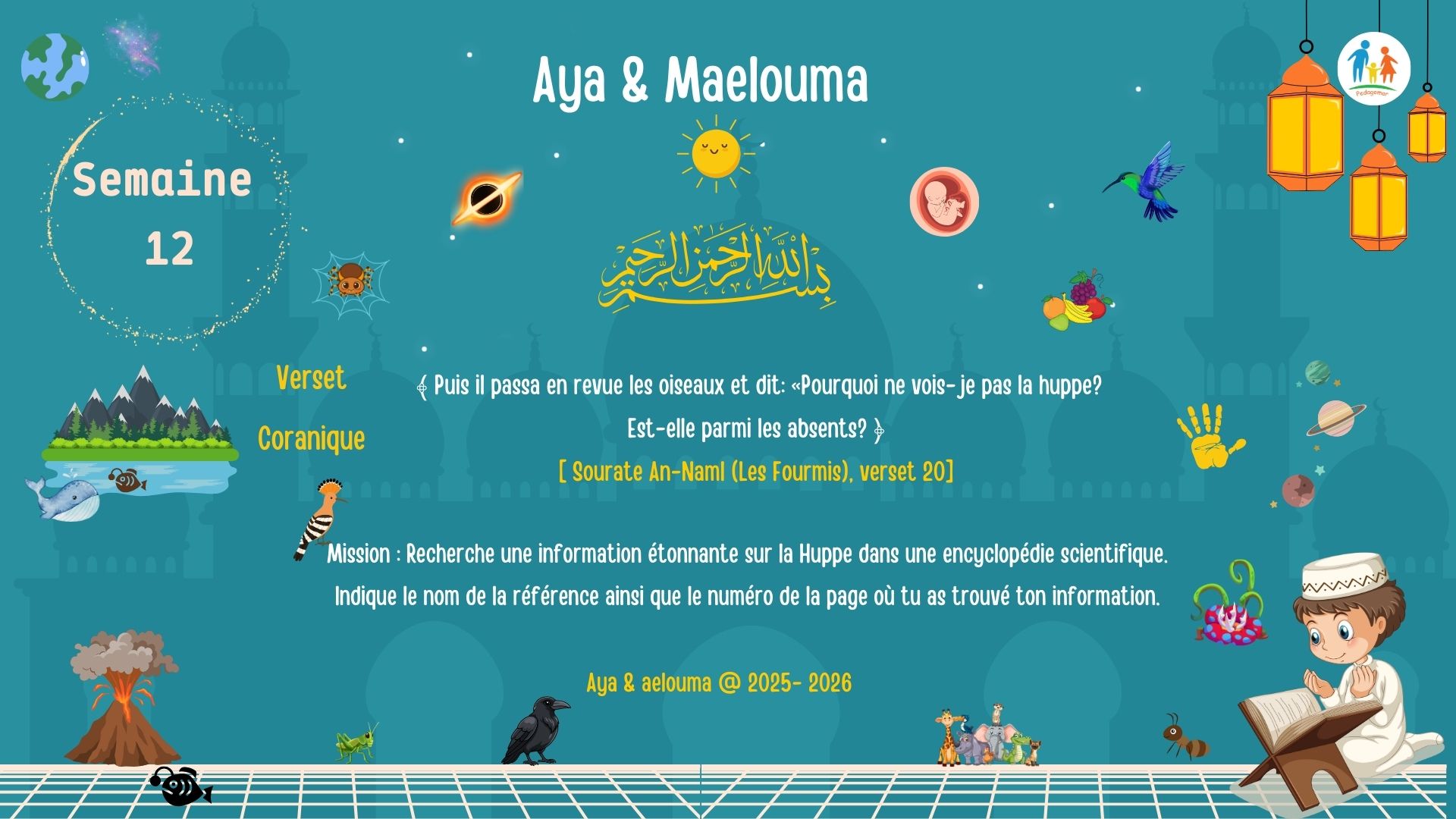 Season #5 Verse of the Week – Aya wa Maʿlouma Program Allah, the Most High, says:(( Until, when they came upon the valley of the ants, an ant said: “O…