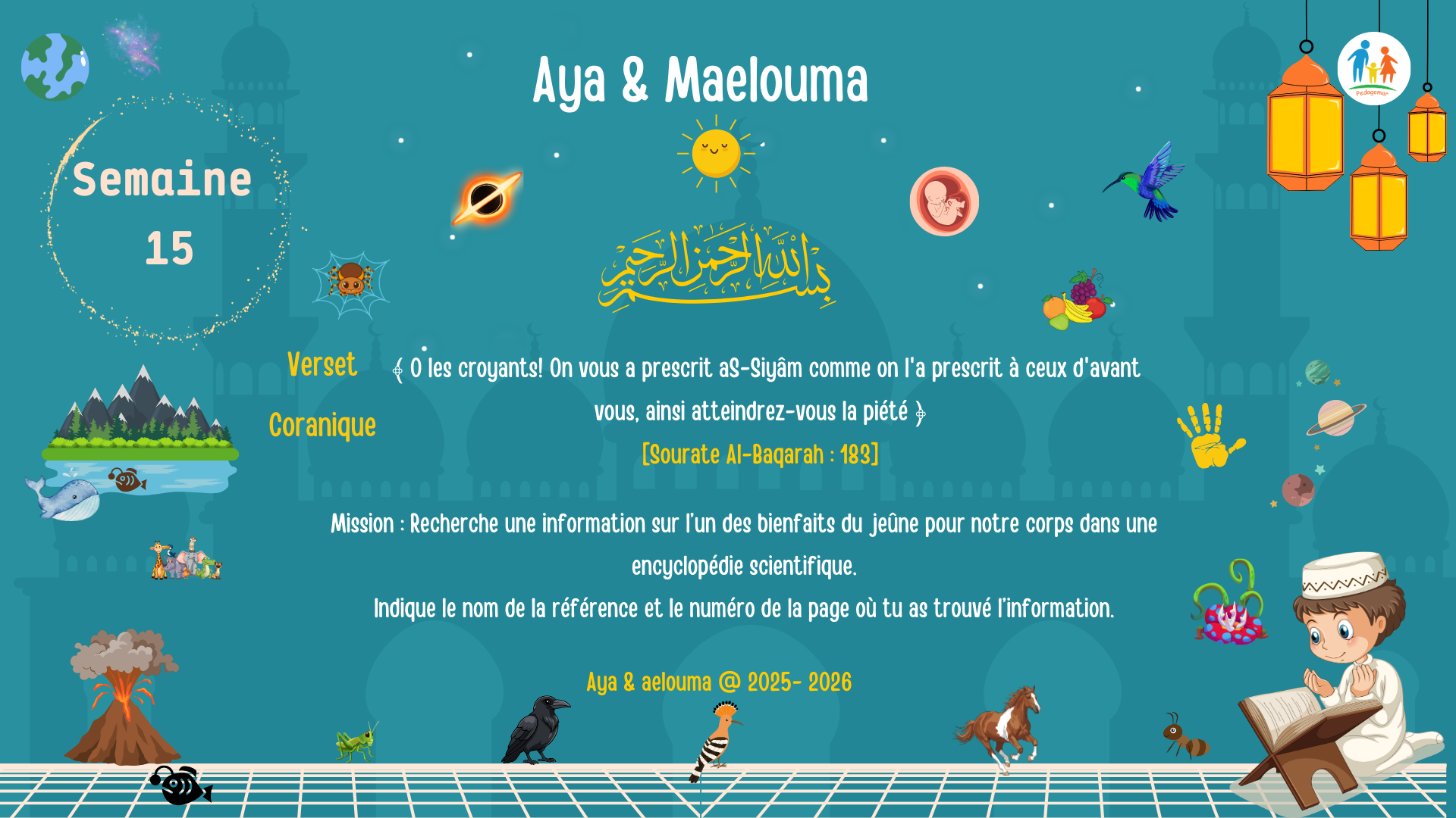 Season #5 “Have We not made for him two eyes, and a tongue and two lips?” (Qur’an, Surah Al-Balad, 8–9) Educational Goals for Reflection and Contemplation…