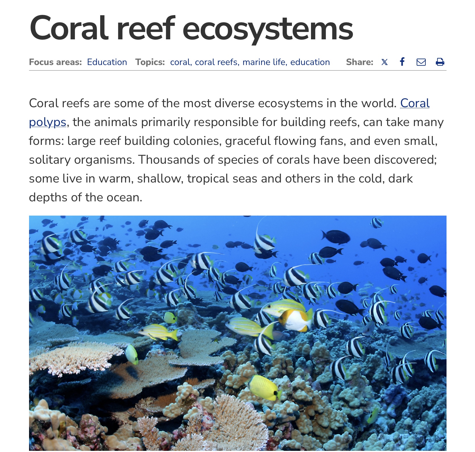 Coral reefs are often called the rain forest of the ocean because they're bursting with colorful life just like a jungle
