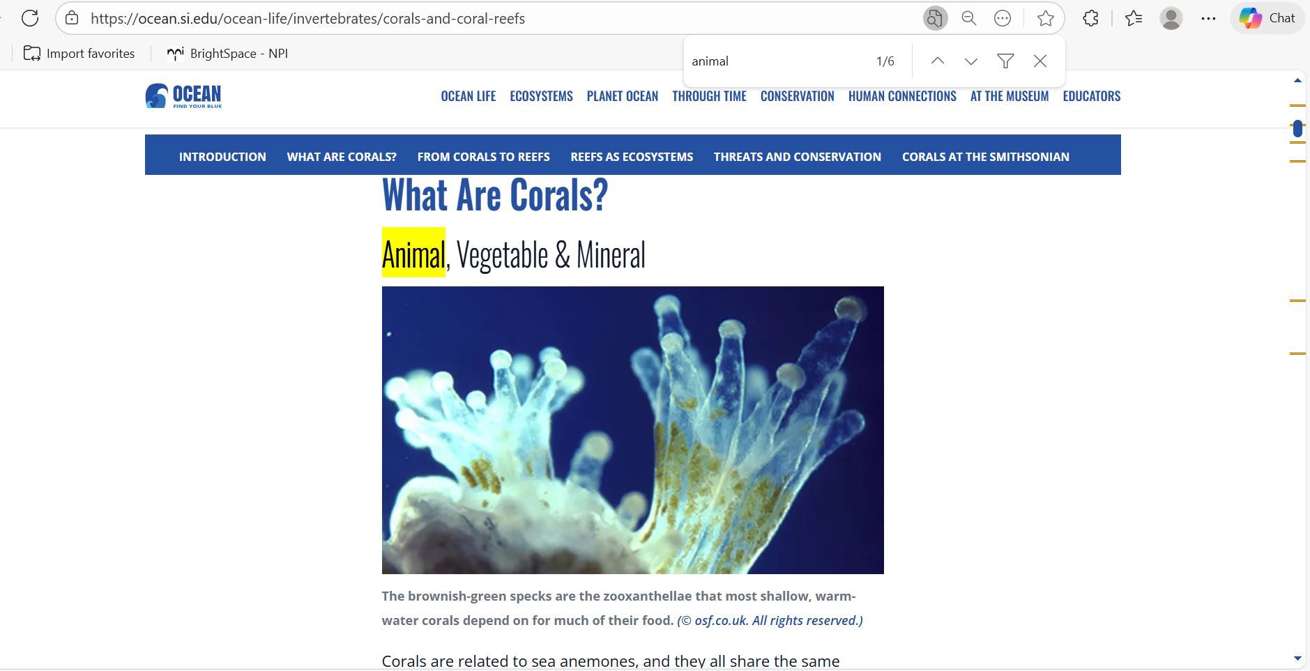 Did you know that a coral is a animal. Corals do, however, have a special relationship with teeny, tiny microscopic plant like orgasms called algae.