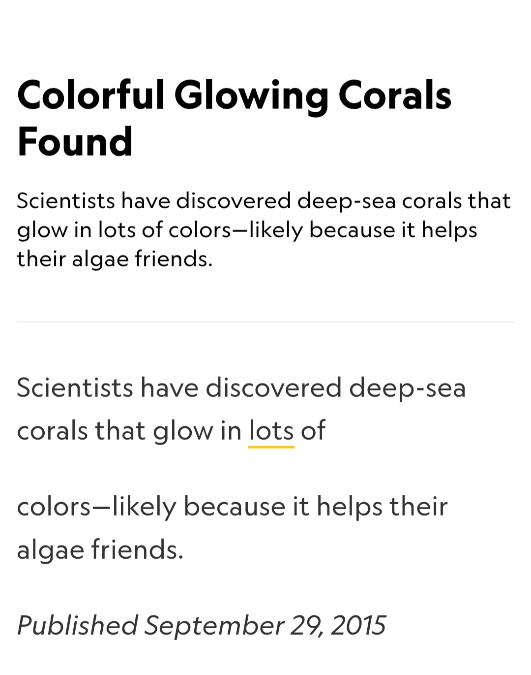 Scientists have discovered deep-sea corals that glow in lots of colors—likely because it helps their algae friends.