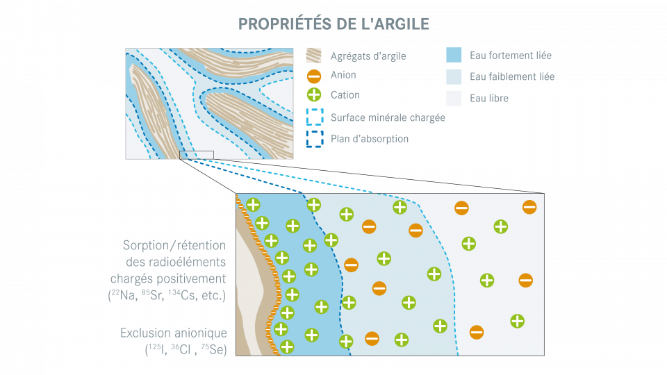 L’argile est une roche aux propriétés remarquables : peu perméable, elle retarde ou limite naturellement leur dispersion dans le milieu géologique.Les roches sont composées de minéraux, substances solides caractérisées par un agencement particulier d'éléments chimiques. Ceux de l’argile appartiennent à la famille des silicates, constitués d’atomes de silicium et d’oxygène mais également d'aluminium, de fer, de calcium ou encore de potassium. Dieu nous a fait d'argile , qui est riche en minéraux qui sont utile pour le corps