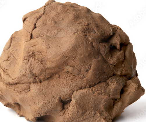 الطين مادة طبيعية تتكون من جزيئات صخرية دقيقة. عند خلطه بكمية كافية من الماء، يصبح قوامه طريًا ولزجًا. على عكس الطين العادي، يحتفظ الطين بشكله. يمكن تشكيله بالضغط عليه، أو دحرجته، أو تقطيعه، أو رصه في طبقات لتكوين أشكال متنوعة