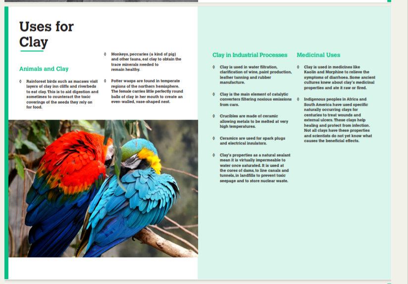 No other earth material has so wide an importance or such extended uses as do the clays. They are used in a wide variety of industries. As soils, they provide the environment for almost all plant growth and hence for nearly all life on the Earth's surface. They provide porosity, aeration, and water retention and are a reservoir of potassium oxide, calcium oxide, and even.
