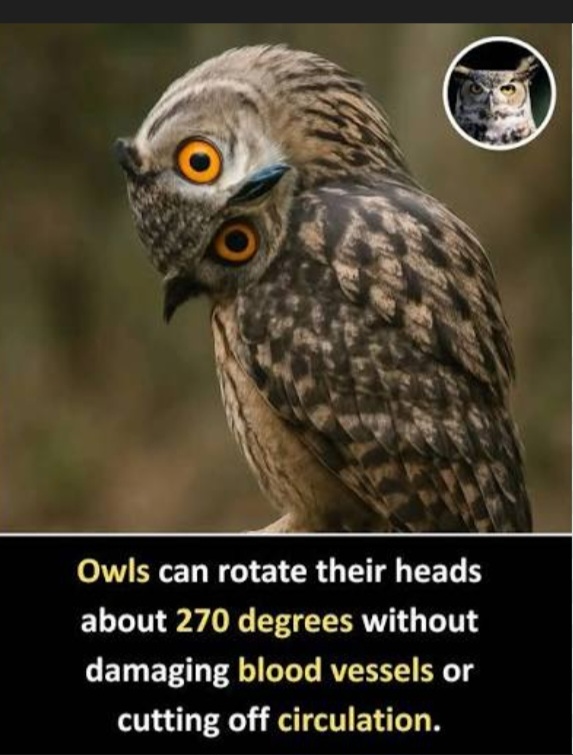 من أبرز سمات البوم دوران رأسه، إذ يمكنه تدوير رأسه حتى 270 درجة! هذه المرونة المذهلة تعوض عن عيونه الثابتة المواجهة للأمام، والتي لا تتحرك كثيرًا داخل محجريها. يمنح هذا التكوين البوم رؤية ثنائية ممتازة وإدراكًا عميقًا، مما يجعله مثاليًا لرصد الفرائس في الإضاءة الخافتة