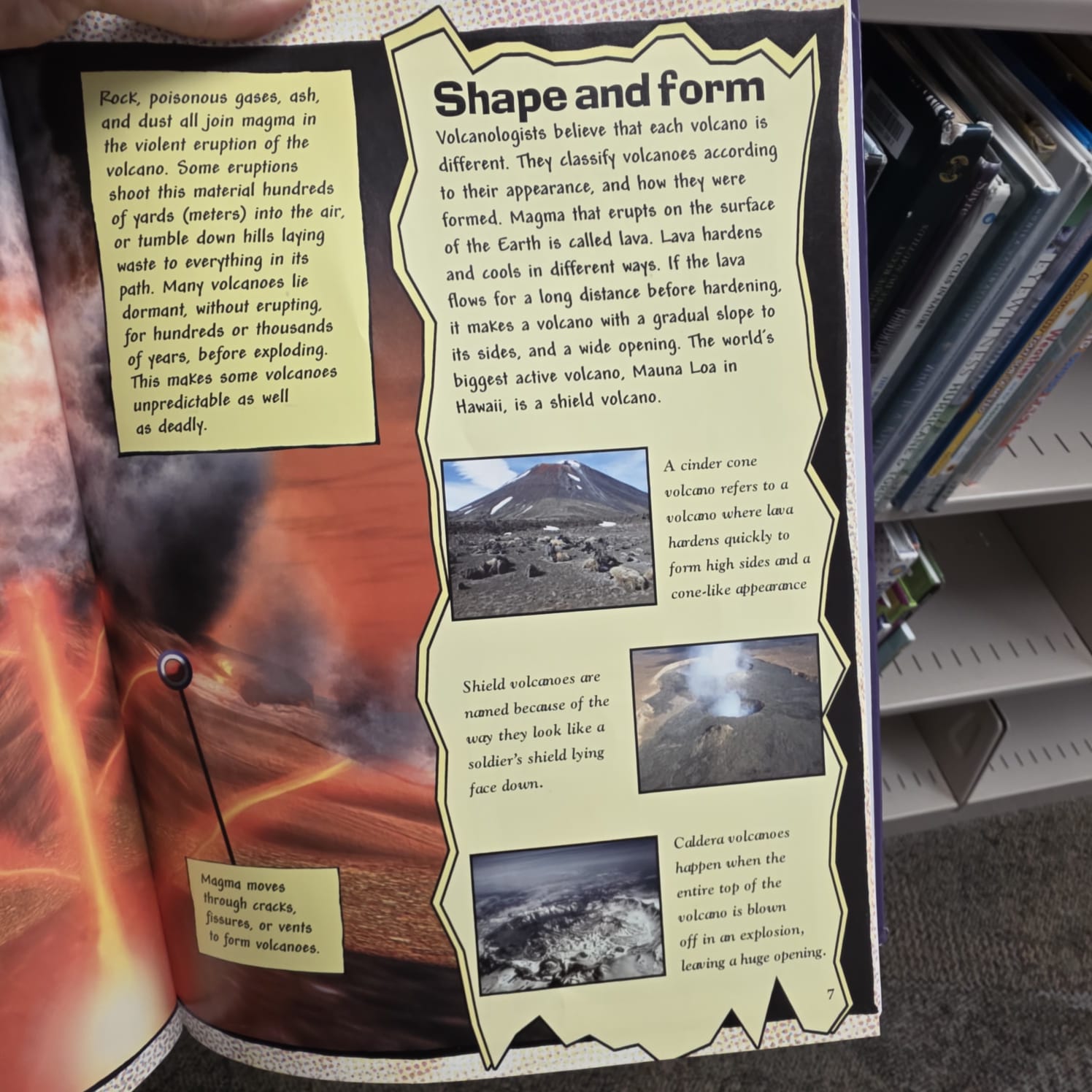 Volcanologists believe that each volcano is different. They classify volcanoes according to their appearance, and how they were formed. Magma that erupts on the surface of the Earth is called lava. Lava hardens and cools in different ways. If the lava flows for a long distance before hardening, it makes a volcano with a gradual slope to its sides, and a wide opening. The world’s biggest active volcano, Mauna Loa in Hawaii, is a shield volcano.